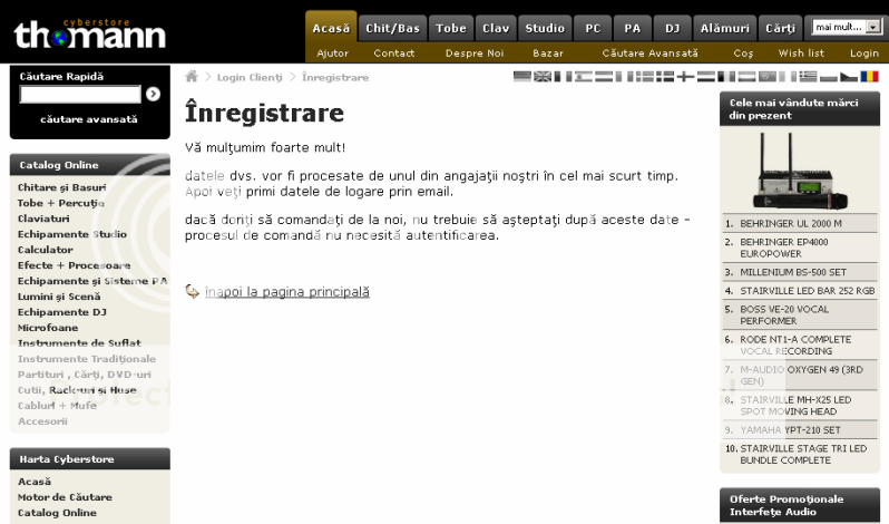 thomann.de şi în RO thomann.de şi în româneşte, pentru că mulţi oameni cumpărau prin alte persoane sau firme, ce aduceau aceleaşi produse, plus adausul lor. Spor la cumpărături.